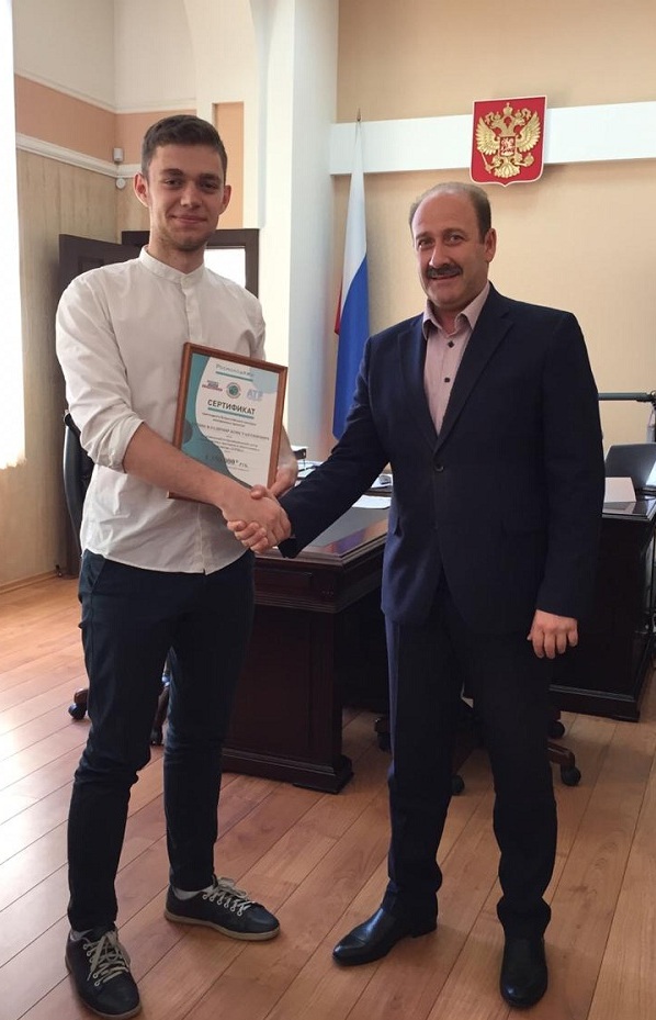 Глава Рубцовска Дмитрий Фельдман поздравил многократного победителя краевых и всероссийских конкурсов, директора Алтайской региональной социально-ориентированной общественной организации Центр поддержки и развития общественных инициатив «Сфера» Владимира Купина с победой на конкурсе грантов, проходивших в рамках молодежного управленческого форума «Алтай. Территория развития», организованного Управлением молодёжной политики и реализации программ общественного развития Алтайского края. Молодой предприниматель стал обладателем гранта в сумме 1,35 млн. рублей Всероссийского конкурса молодежных проектов Федерального агентства по делам молодёжи (Росмолодёжь).