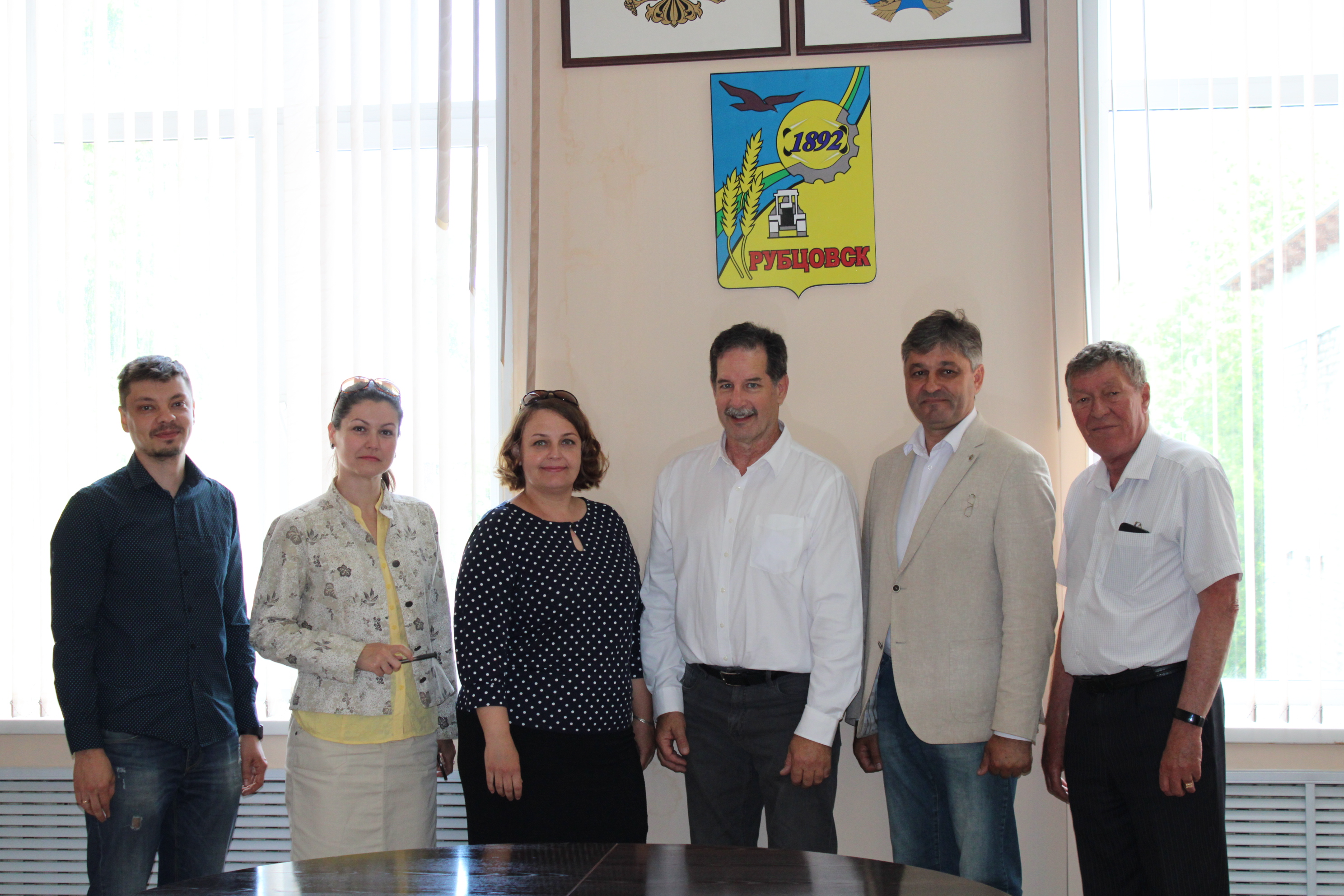 На минувшей неделе в Рубцовске с визитом побывал гражданин Соединенных Штатов Америки, президент комитета городов-побратимов Грантс-Пасс-Рубцовск Дэвид Оуен. Горожане подготовили для гостя разнообразную программу, в ходе которой Дэвид встретился с и.о. заместителя Главы Администрации Рубцовска - начальником управления образования Алексеем Мищериным и председателем Рубцовского городского Совета депутатов Василием Курганским, познакомился с жителями Рубцовска и его достопримечательностями. Отметим, что визит американца совпал с поездкой нашей делегации в США.