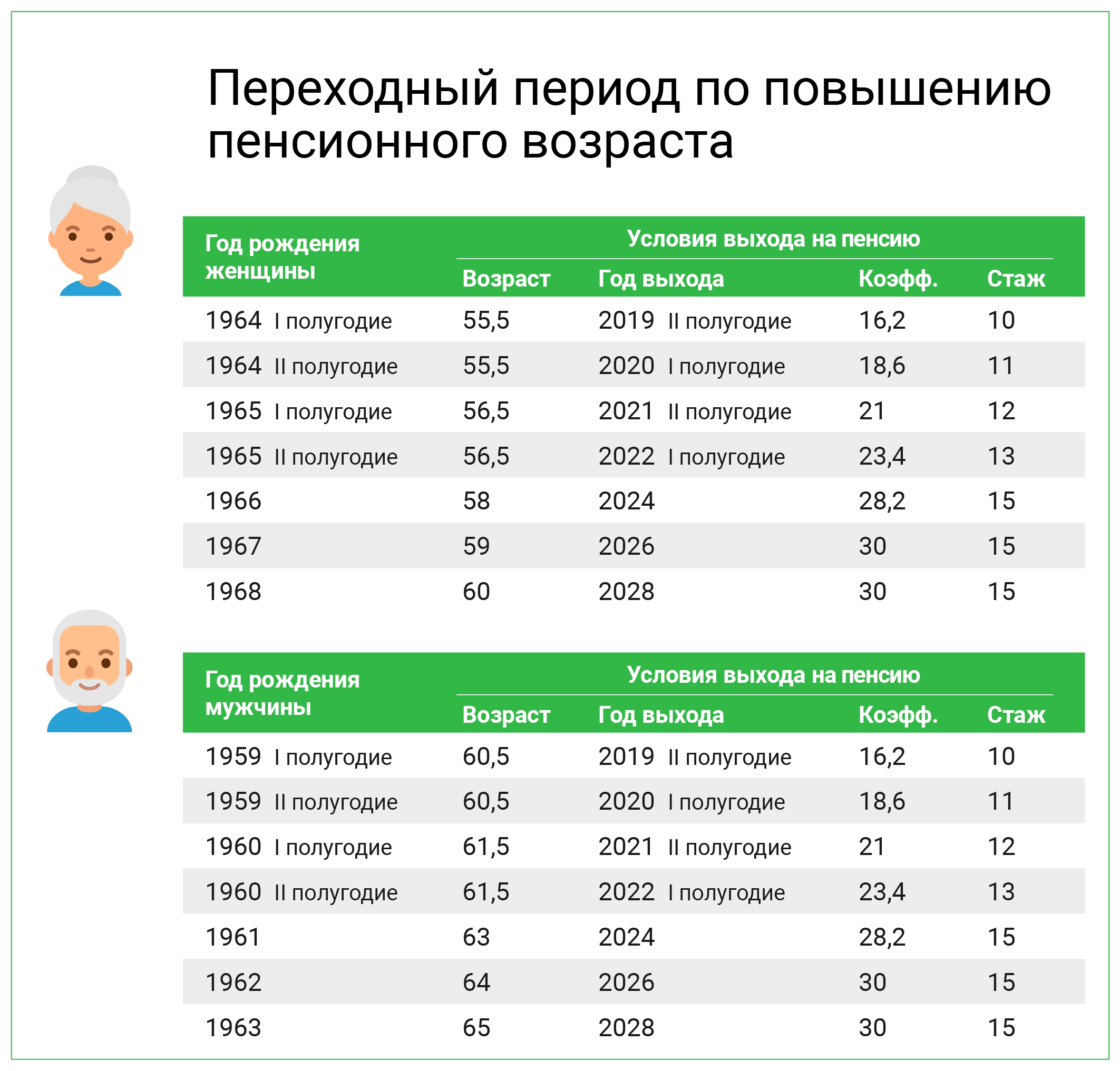 Несмотря на то, что с 2020-го пенсионный возраст вырос еще на год, а общее увеличение составило уже два года, пенсии, как и в прошлом году, назначаются на шесть месяцев позже прежнего пенсионного возраста: в 55,5 лет для женщин и в 60,5 лет для мужчин.