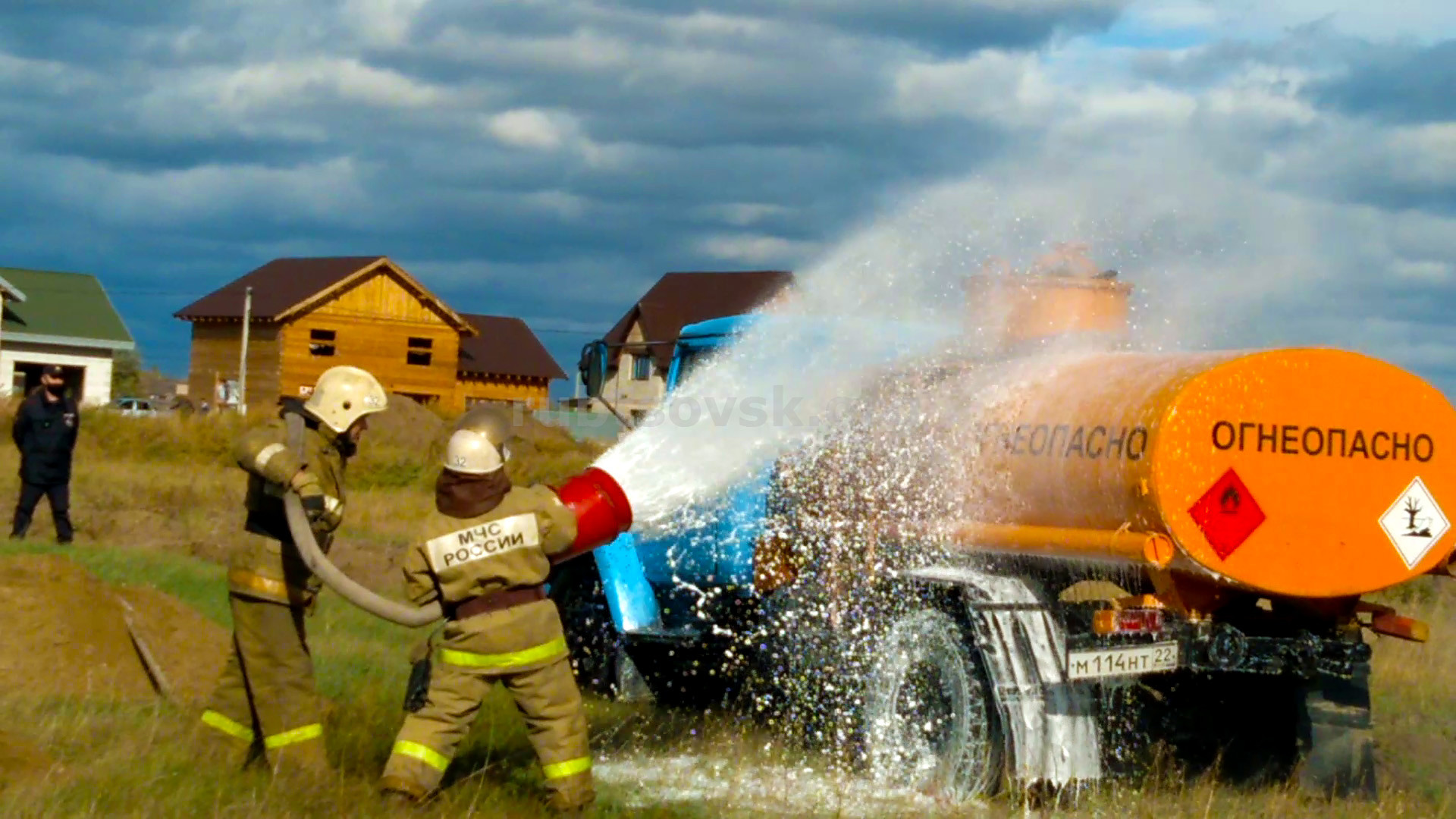3. Выполнение практических мероприятий в соответствии с условиями вводных: произведено оцепление территории ЧС службами ГИБДД, МВД и Росгвардии, произведена отсыпка песком зоны разлива нефтепродуктов, произведен облив бензовоза пеной, взяты пробы грунта сотрудниками Центра гигиены и эпидемиологии в Алтайском крае в г.Рубцовске.