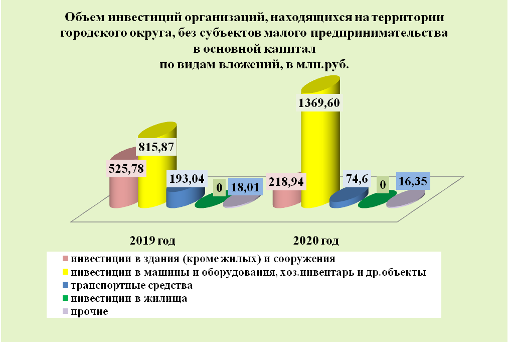 Инвестиции в основной капитал по организациям, находящимся на территории городского округа без субъектов малого предпринимательства, за 2020 год составил 1679,5 млн. руб. или на 8,2 % больше, чем в прошлом году.