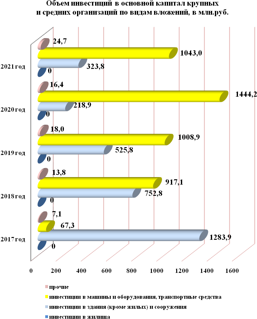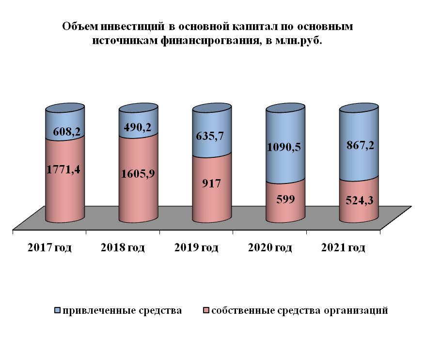 За последние 5 лет объем инвестиций в основной капитал крупных и средних организаций на территории города дважды превышал значение более 2 млрд.руб. и в 2019 - 2020 годы превышал значение 1,3 млрд.руб.: