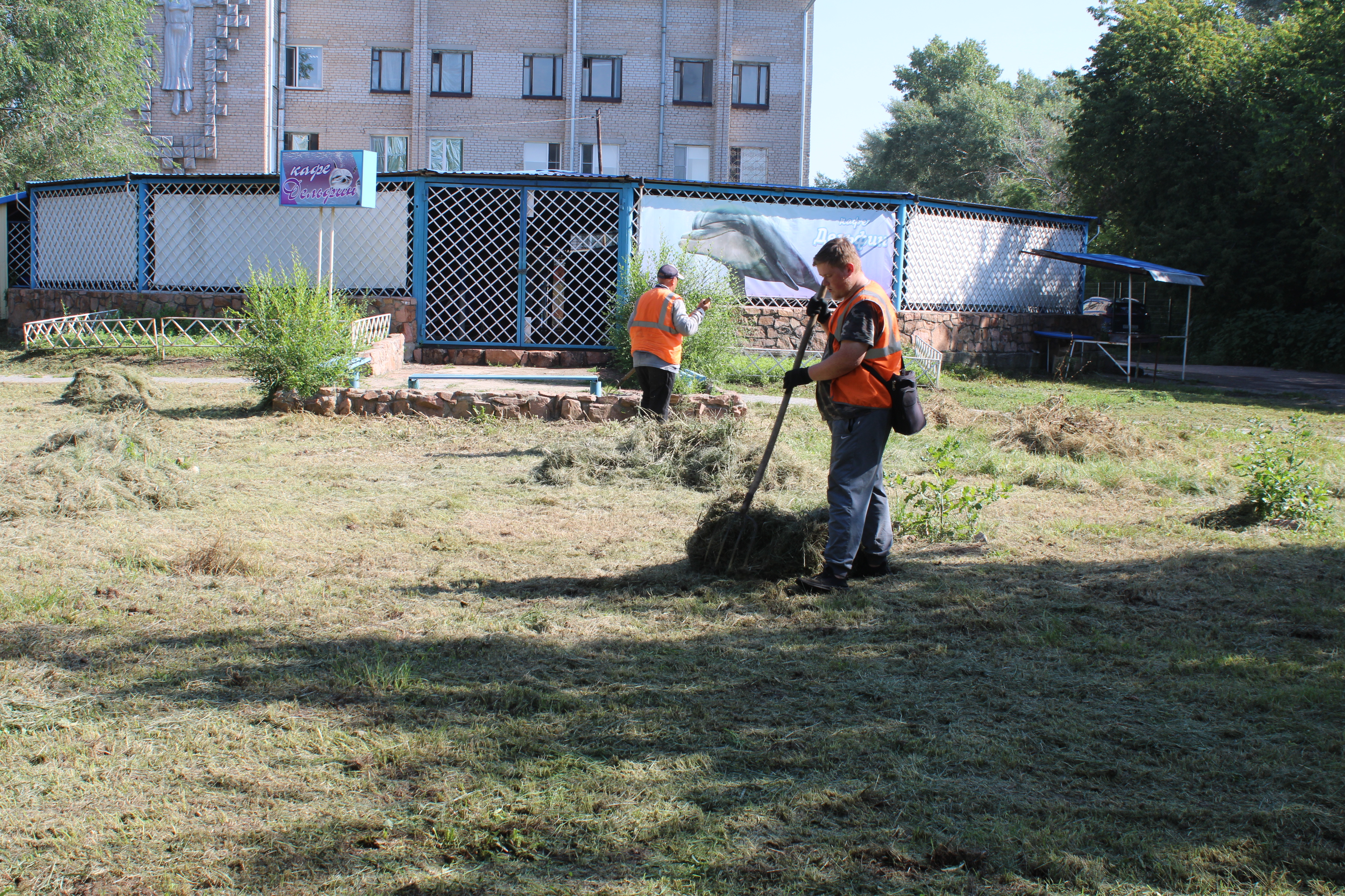 Сегодня коммунальщики собирают и вывозят скошенную траву на набережной. Косят траву по улице Московской, по проспекту Ленина в районе ТЦ «Мередиан». В северной части города на дорогах работает автогрейдер.