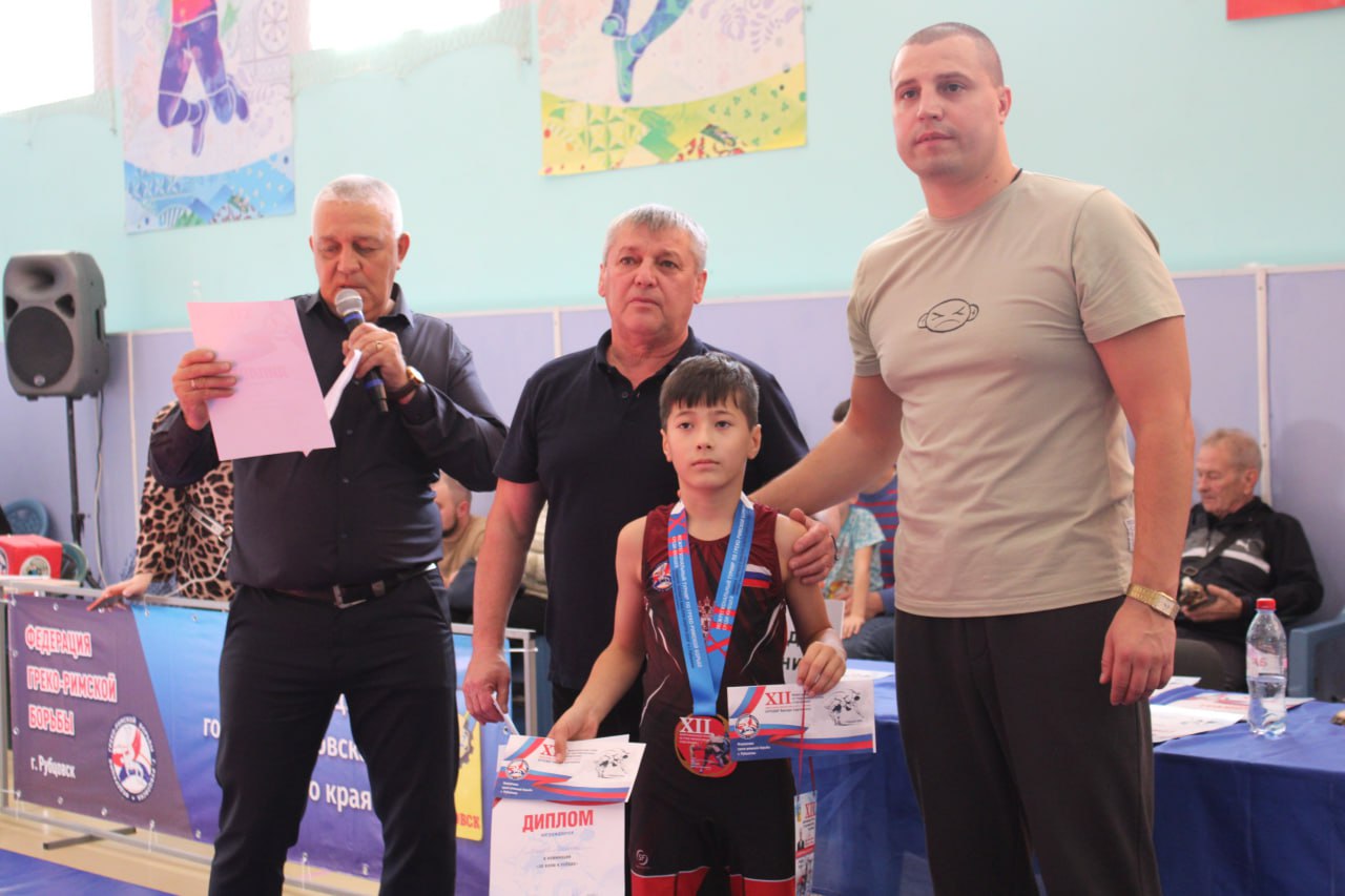 На ковре разворачивались напряженные поединки, борцы демонстрировали силу и ловкость. Рубцовск представляли 32 юных спортсмена.