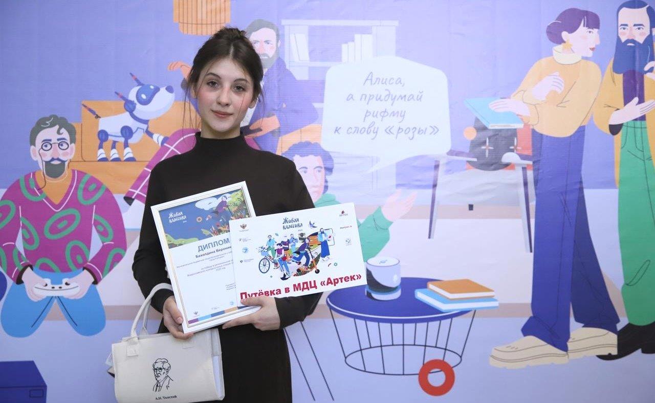 В Барнауле состоялся региональный этап Всероссийского конкурса чтецов «Живая классика». Его участниками стали около 90 человек – победители и призеры муниципальных этапов со всего Алтайского края. Рубцовск представляли учащаяся 11 класса гимназии №3 Вероника Бахолдина, шестиклассница гимназии «Планета Детства» Есения Малюкова и ученица шестого класса школы №23 Ксения Чистякова. Главный приз – путевку в Международный детский центр «Артек» для участия в финале Всероссийского конкурса юных чтецов «Живая классика» получили трое школьников. Среди них ученица 11 класса рубцовской гимназии №3, участница школьной театральной студии «Зеркало» и молодежного театра «Экспресс» Вероника Бахолдина.