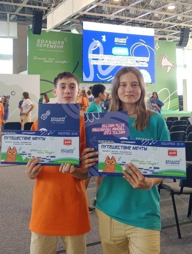 Победителями конкурса «Большая перемена» стали 300 школьников 5–7 классов. Среди них — семиклассница Милана Климова и шестиклассник Даниил Рыбаков из гимназии № 3 города Рубцовска. Для победы ребятам необходимо было успешно пройти все этапы шестого сезона, тема которого — «От мечты к свершениям».