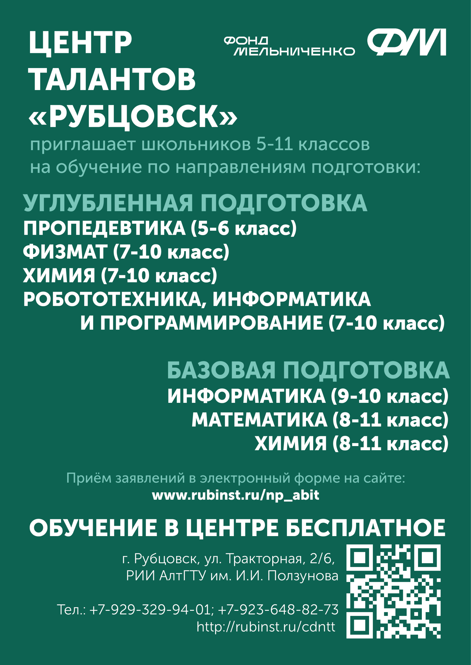 До 4 сентября продолжается прием заявлений на новый учебный год в Центре талантов Фонда Мельниченко «Рубцовск».