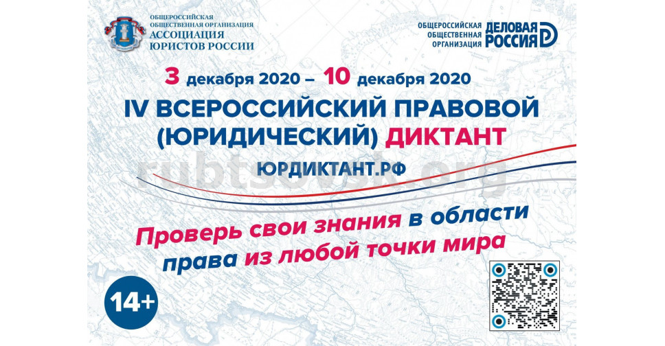 Всероссийский правовой диктант пройдет с 3 по 10 декабря. Он проводится в целях оценки уровня правовой грамотности населения.