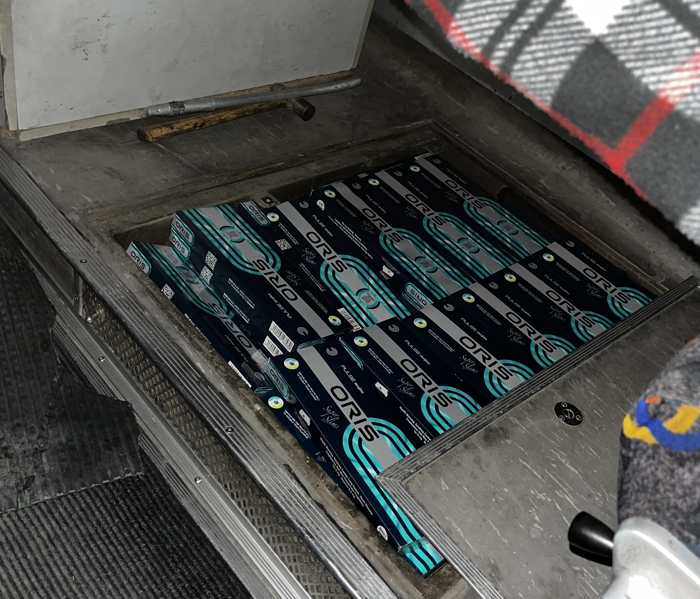 Сотрудники Пограничного управления ФСБ России по Алтайскому краю пресекли попытку ввоза в наш регион крупной партии табачной продукции иностранного производства. В международном автомобильном пункте пропуска Веселоярск в ходе осмотра пассажирского рейсового автобуса, следующего на въезд в Российскую Федерацию, сотрудники пограничного контроля выявили тайник, в котором были сокрыты свыше 3000 пачек сигарет.