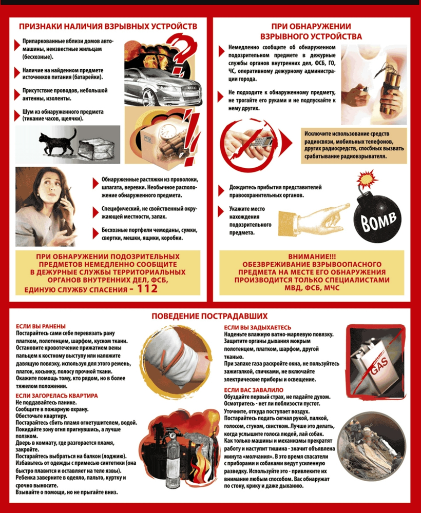 grebnevoy_28.02.2024_kak-raspoznat-terrorista_0_h.jpg Уважаемые горожане, будьте предельно внимательны! Всегда обращайте внимание на поведение окружающих, наличие бесхозных и несоответствующих обстановке предметов! ⁣ При обнаружении подозрительных предметов немедленно сообщите в дежурные службы территориальных органов внутренних служб, ФСБ, единую службу спасения -  112.