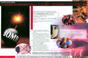 Не подбирайте бесхозных вещей, как бы привлекательно они не выглядели. В них могут быть закамуфлированы взрывные устройства (в банках из-под пива, сотовых телефонах и т.п.).