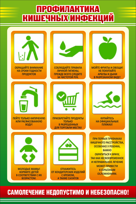 С наступлением лета возрастает риск заболевания острыми кишечными инфекциями (ОКИ). Характерными признаками ОКИ являются общая интоксикация организма, поражение желудочно-кишечного тракта, обезвоживание. Как правило, острые кишечные инфекции начинаются остро, повышается температура тела, появляется жидкий стул, боли в животе, рвота. Этиология ОКИ разнообразна – патогенные бактерии (шигеллы, сальмонеллы, иерсинии, эшерихии), условно-патогенные бактерии (стафилококк, протей, цитробактер, энтеробактер и др.), вирусы (энтеровирусы, ротавирусы, норовирусы). Заболеваемость этими инфекциями регистрируется в течение всего года с подъемом в летний период.