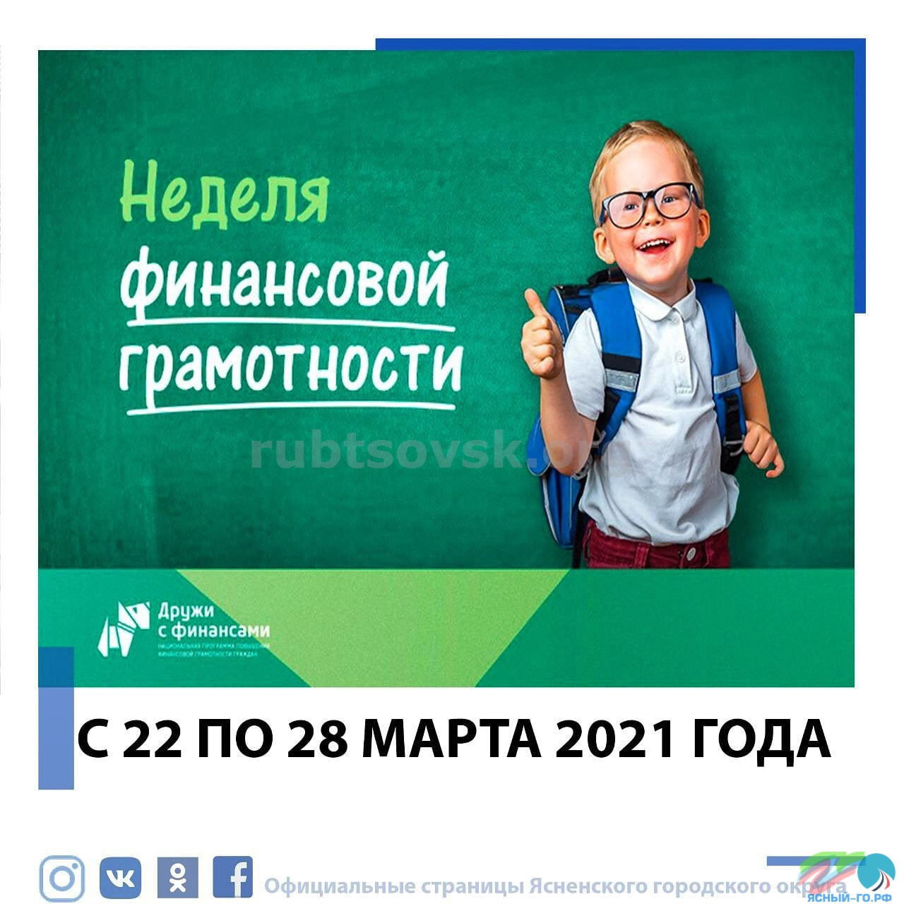 В рамках реализации Стратегии повышения финансовой грамотности в Российской Федерации на 2017-2023 годы и государственной программы Алтайского края «Повышение уровня финансовой грамотности населения в Алтайском крае» с 22 по 28 марта 2021 года в Алтайском крае проходит Всероссийская неделя финансовой грамотности для детей и молодёжи.