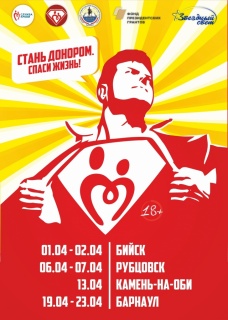 С 6 по 7 апреля в Рубцовске пройдёт второй этап реализации проекта по развитию донорства крови «Стань Донором. Спаси Жизнь!», получившего поддержку Фонда президентских грантов. Организаторами являются Алтайский региональный общественный фонд благотворительных и социальных программ «Звездный свет» и Алтайский государственный технический университет им. И.И. Ползунова.