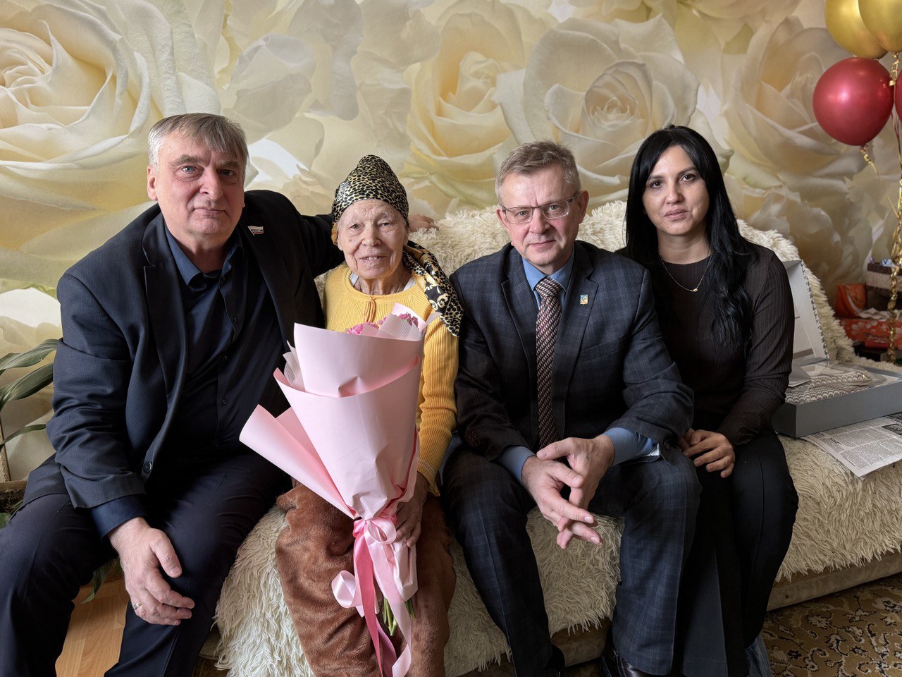 Поздравить Веру Федотовну с юбилеем, выразить слова благодарности и самые теплые пожелания пришли заместитель Главы Администрации Рубцовска Александр Шашок, начальник управления социальной защиты населения по городу Рубцовску и Рубцовскому району Марина Ерошкина и заместитель председателя Рубцовского городского совета депутатов Валерий Никеев. Юбилярша с радостью встретила гостей, поблагодарила за поздравления и поделилась воспоминаниями.