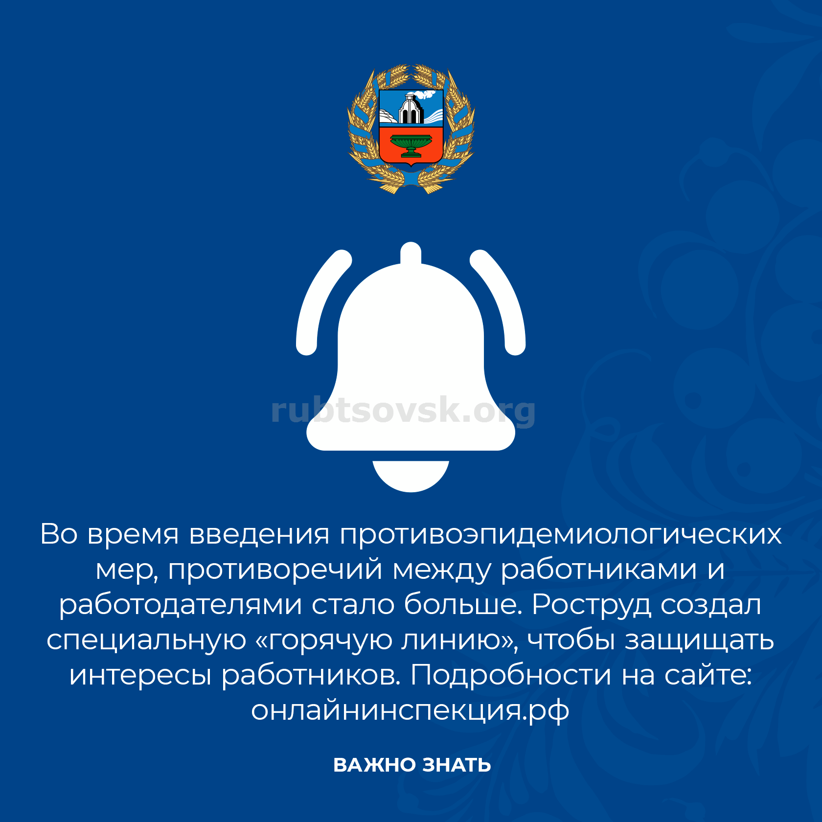 Уважаемые Рубцовчане! Во избежание распространения короновирусной инфекции всем гражданам, независимо от возраста,необходимо соблюдать режим самоизоляции по месту своего проживания или пребывания.