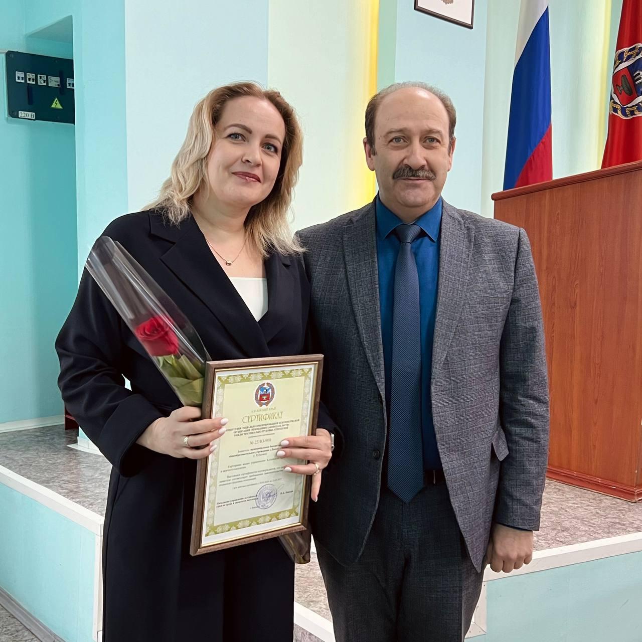 Сегодня, 25 марта, Глава Рубцовска Дмитрий Фельдман вручил сертификат соответствия социально ориентированной некоммерческой организации требованиям законодательства в области социально-трудовых отношений Веронике Чанцовой, директору МБОУ «Лицей «Эрудит». Глава города поблагодарил руководителя учреждения за создание достойных условий труда и благоприятного климата в коллективе, а также за поддержку работников и их семей.