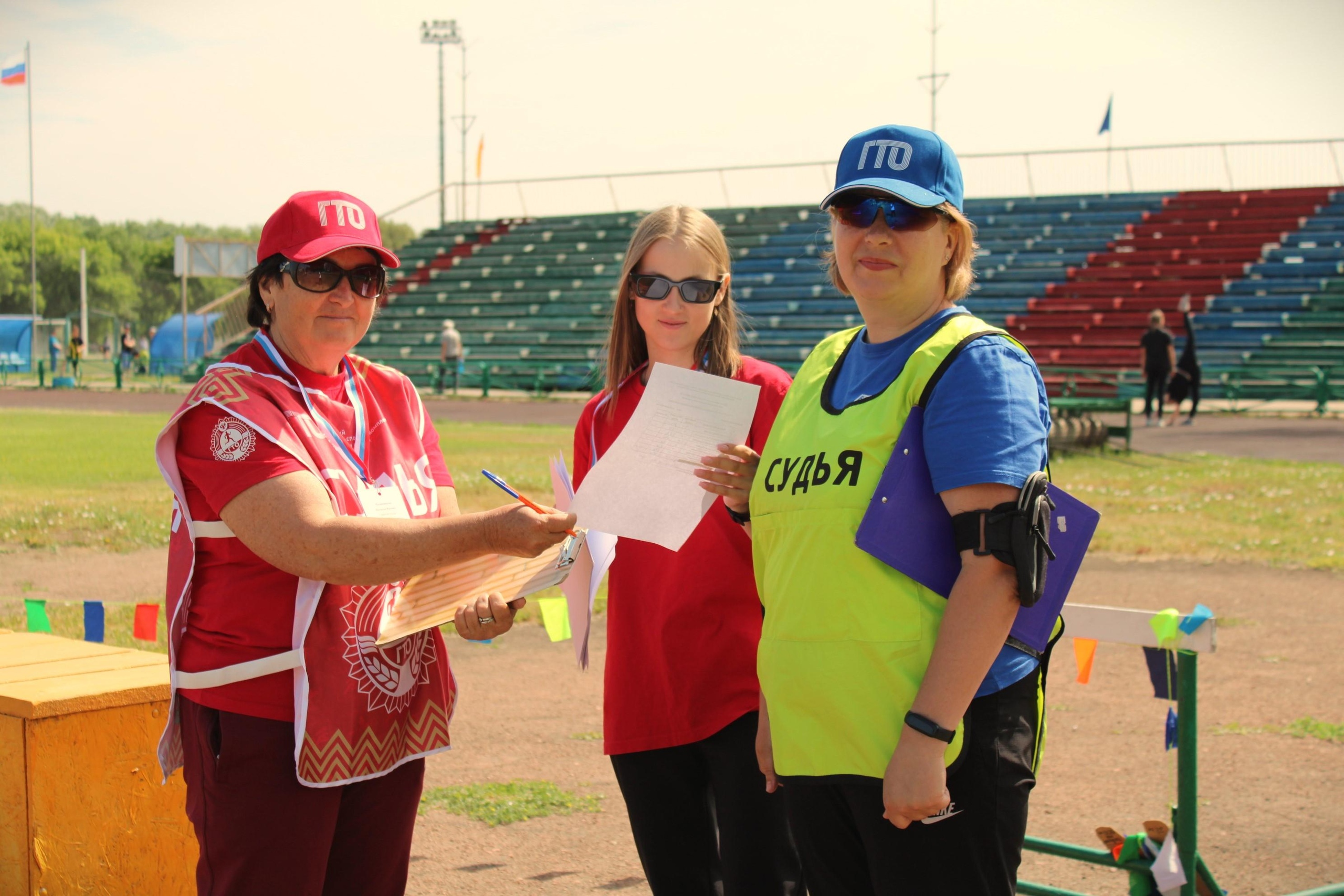 «Гонка ГТО – Эстафета» — шесть этапов: прыжок в длину с места, запрыгивание на тумбу, сгибание и разгибание рук в упоре лёжа, подъём туловища из положения лёжа, выпад в шаге, рывок гири и приседание с гантелью.