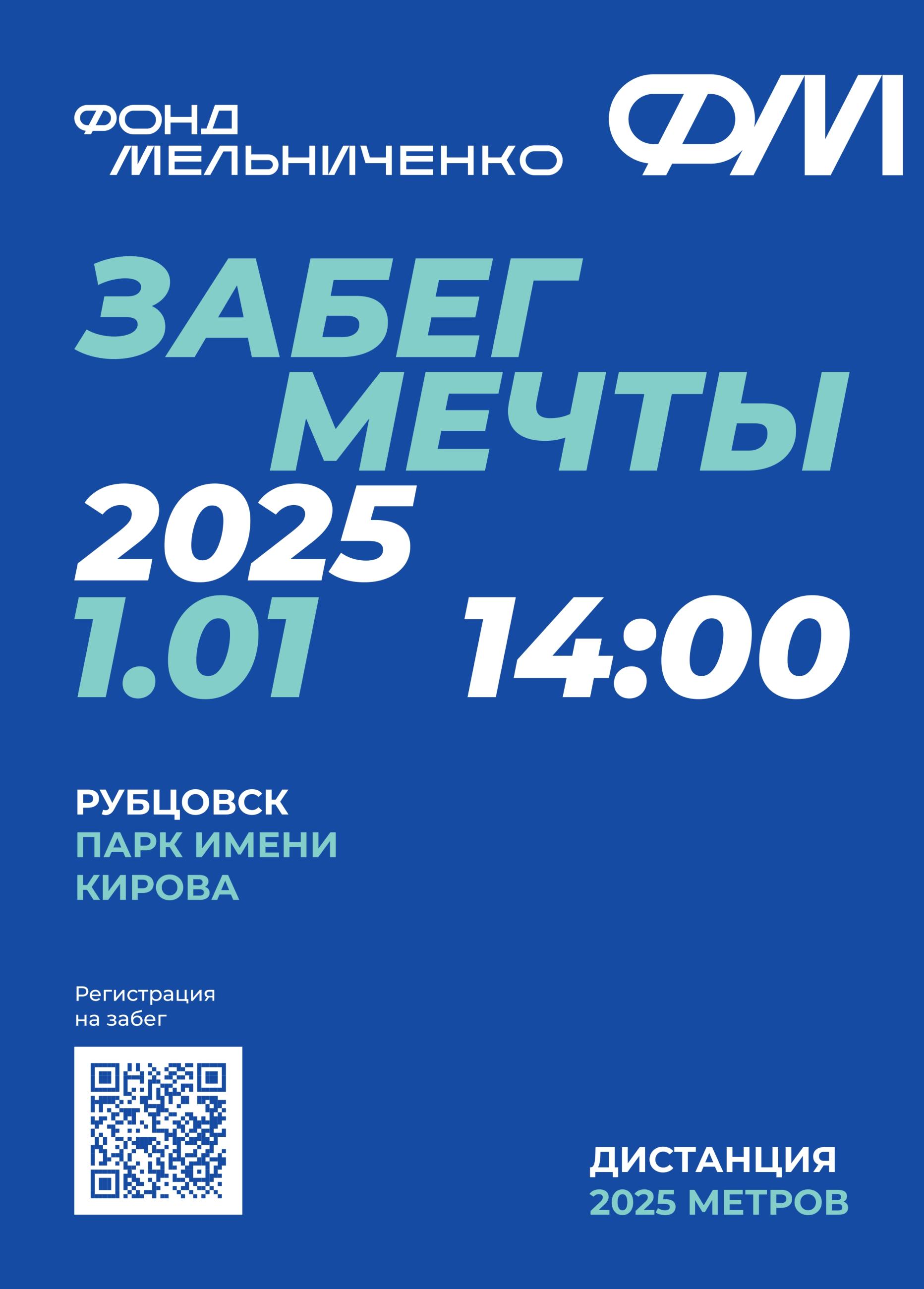 1 января 2025 года в 14.00 впервые в Рубцовске в городском парке культуры и отдыха им. С.М. Кирова, состоится новогодний «ЗАБЕГ МЕЧТЫ»! Спортивное событие проводится в 15 городах России, и Рубцовск, стал единственным городом в Алтайском крае, который подарит горожанам шанс исполнить свою мечту! По условиям спортивной акции в ней могут принять участие все желающие, пройдя заранее регистрацию на сайте dvij.goroda.fm.
