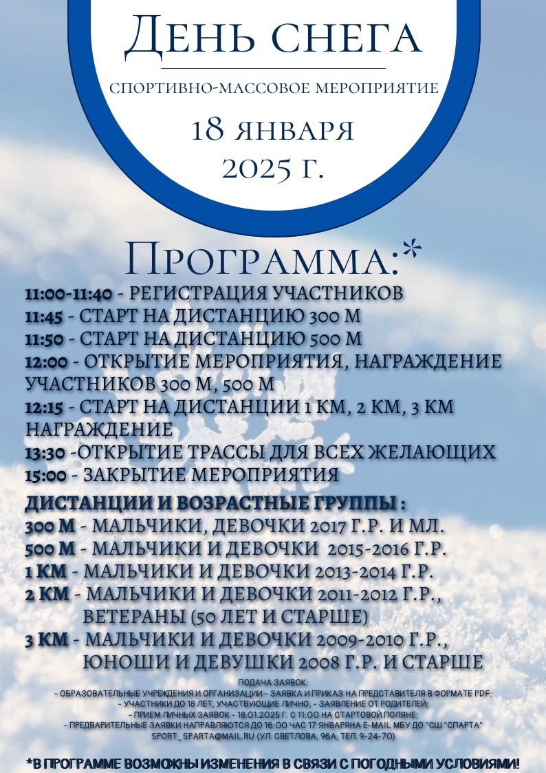 Не забудьте направить предварительную заявку до 17 января до 16:00 на электронную почту МБУ ДО «СШ «Спарта»: srt_srt@mil.ru, уточнить информацию можете по телефону: 8 (385 57) 9-24-70.