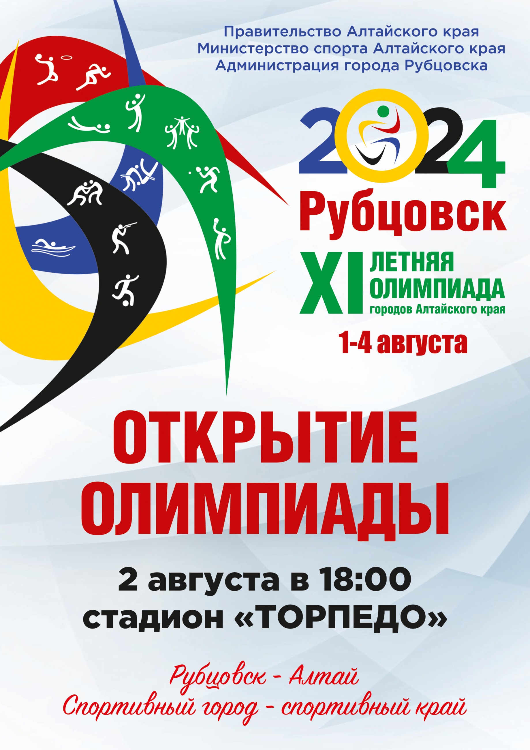 Приглашаем вас на торжественную церемонию открытия XI летней Олимпиады городов Алтайского края: 2 августа в 18:00, стадион «Торпедо».