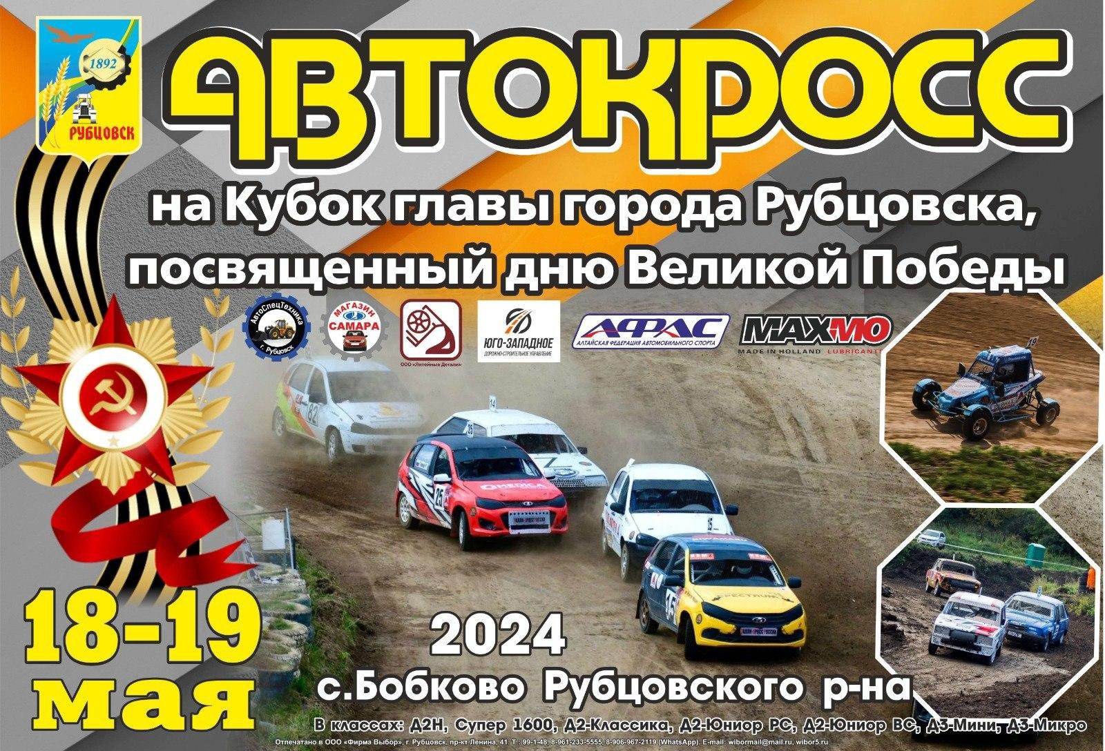 18 и 19 мая на трассе в районе села Бобково Рубцовского района стартуют соревнования по автомобильному кроссу на Кубок Главы Рубцовска. В первый день соревнований состоятся свободные и хронометрируемые тренировка, а с 15:45 начнутся отборочные заезды. Торжественное открытие соревнований пройдет 19 мая в 12:00. В 12:30 будет дан старт финальным заездам.