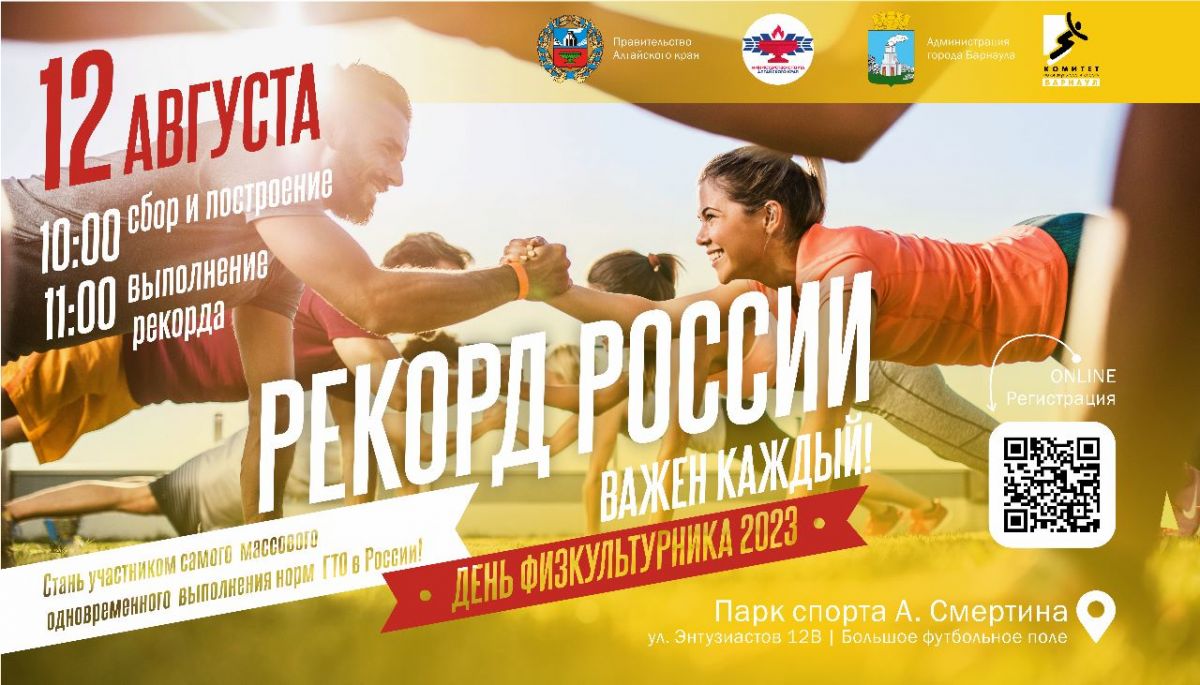 12 августа, в День физкультурника, в парке спорта А. Смертина (Барнаул, ул. Энтузиастов, 12-в) запланировано установление рекорда России по одновременному выполнению норм ГТО (отжимание).
