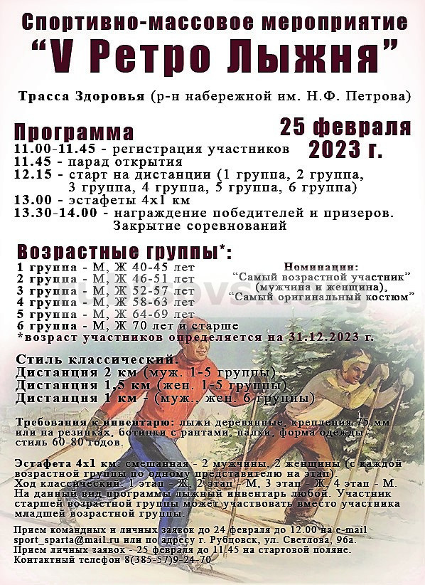 25 февраля 2023 года в Рубцовске состоится спортивно-массовое мероприятие «V Ретро Лыжня».