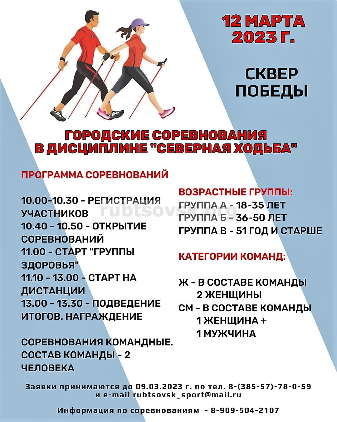 05.03 -11:00 Первенство города Рубцовска по лыжным гонкам (свободный стиль) МБУ СП «СШ «Спарта» Трасса здоровья в р-не набережной им. Н.Ф. Петрова.