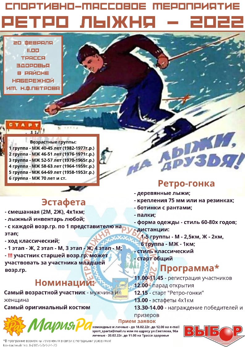20 февраля 2022 г. на Трассе здоровья прошло спортивно-массовое мероприятие «Ретро лыжня». Соревнования уже стали традиционными для города Рубцовска – в этом году ретро гонка прошла в четвертый раз.