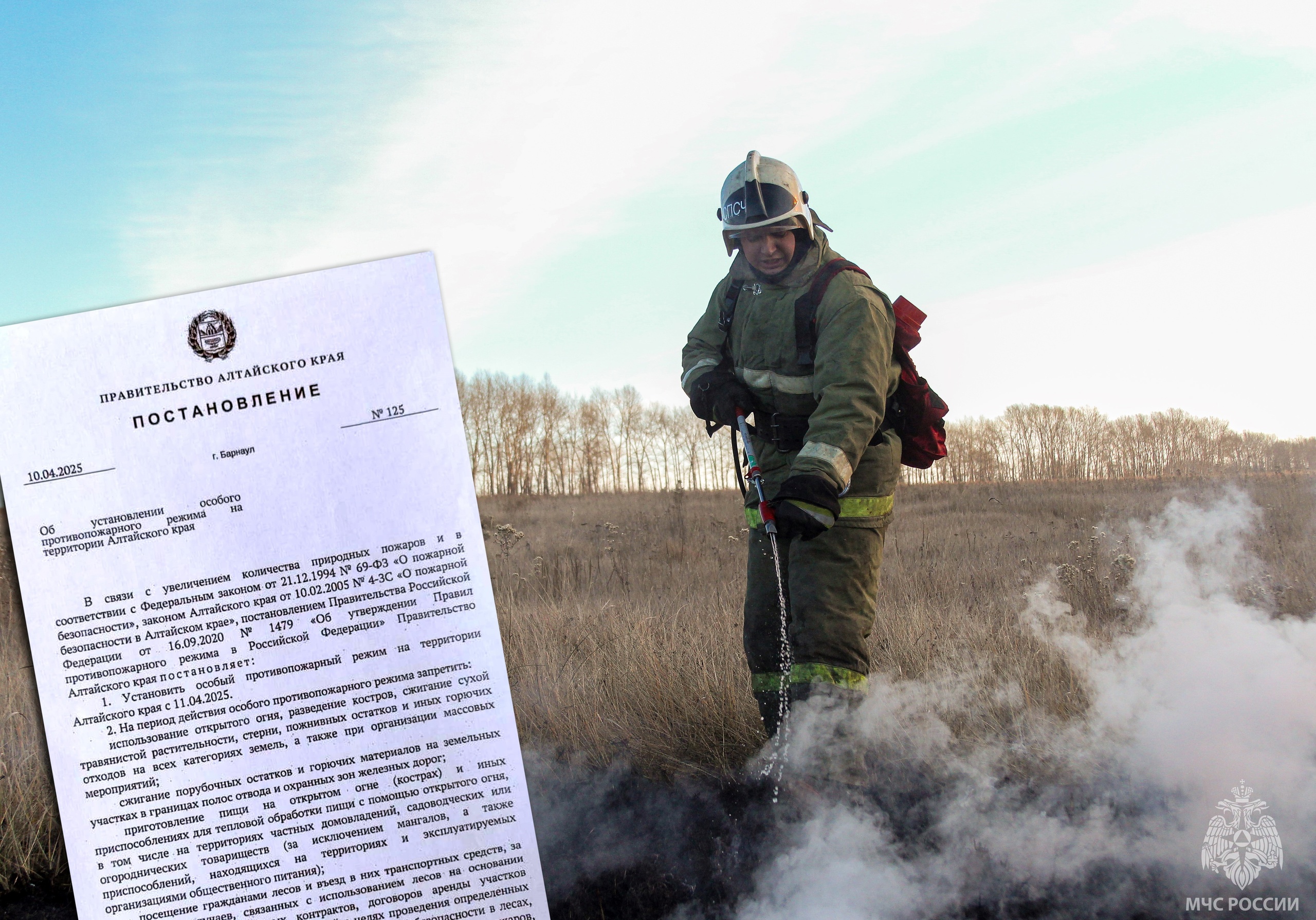 В связи с увеличением количества природных пожаров на территории Алтайского края с 11 апреля постановлением Правительства Алтайского края от 10.04.2025 № 125 введен особый противопожарный режим.