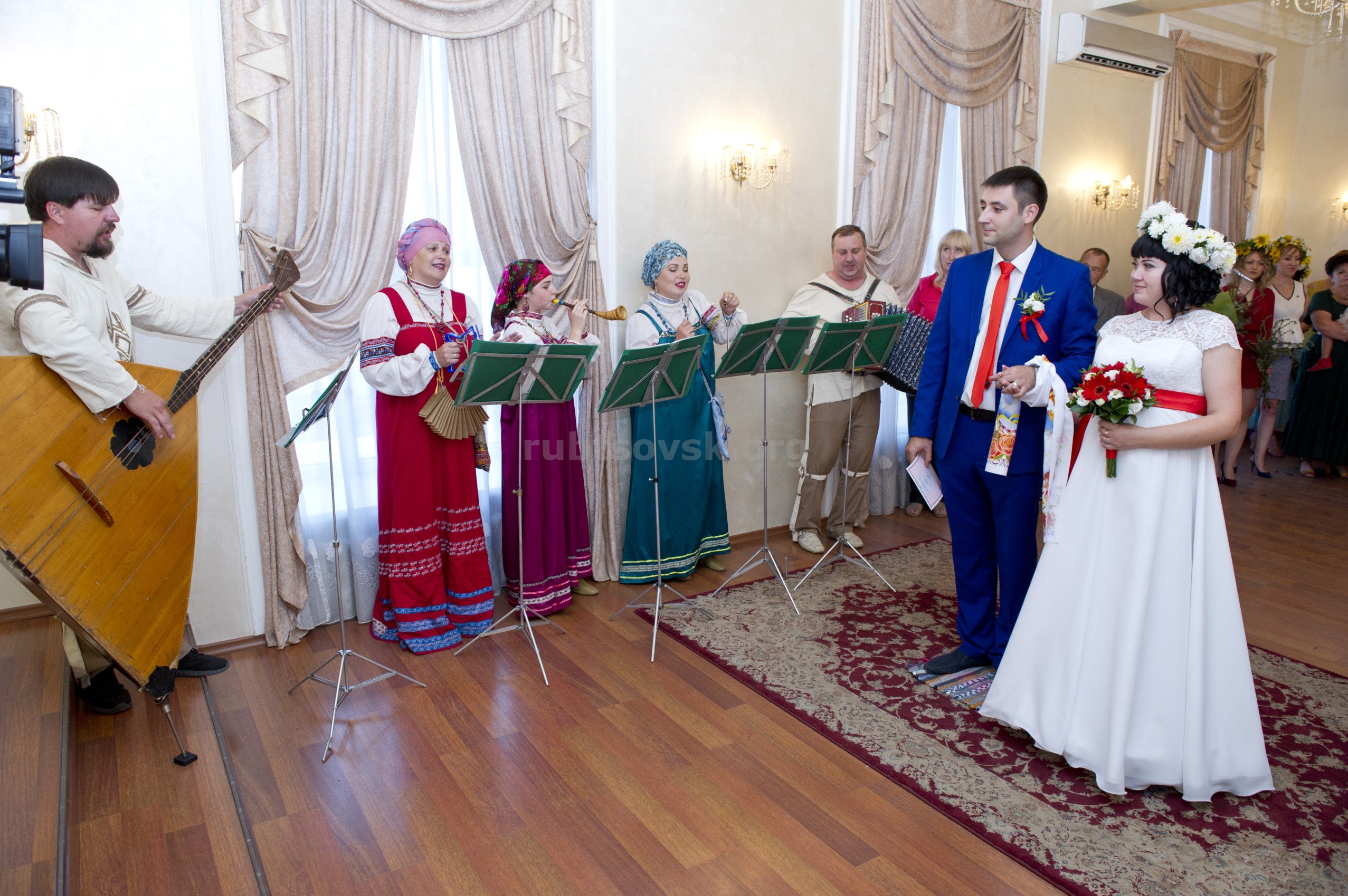 Зал торжественных регистраций был оформлен предметами старинного быта русского народа, которые были любезно предоставлены Рубцовским краеведческим музеем.