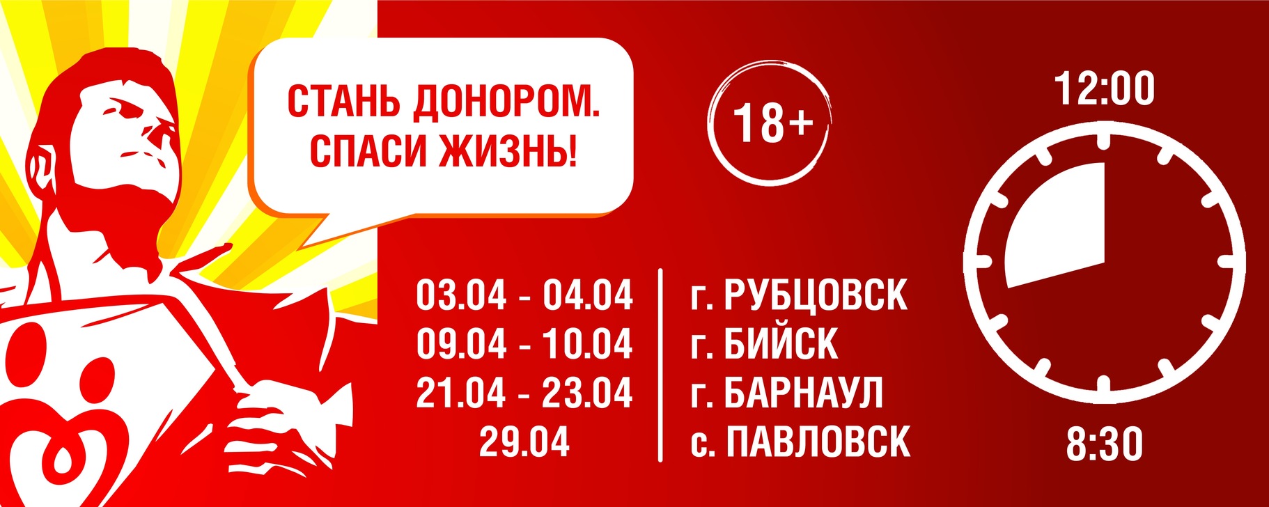 В этом году весенняя акция по забору крови пройдёт в Рубцовске с 3 по 4 апреля.