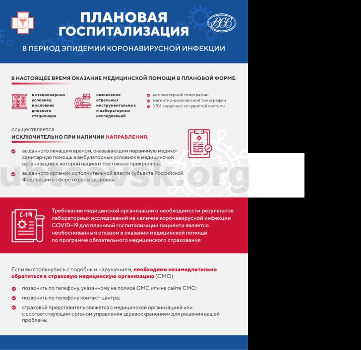 Для информирования населения Федеральный фонд обязательного медицинского страхования подготовил инфографику о порядке оказания плановой медицинской помощи в период эпидемии коронавирусной инфекции.