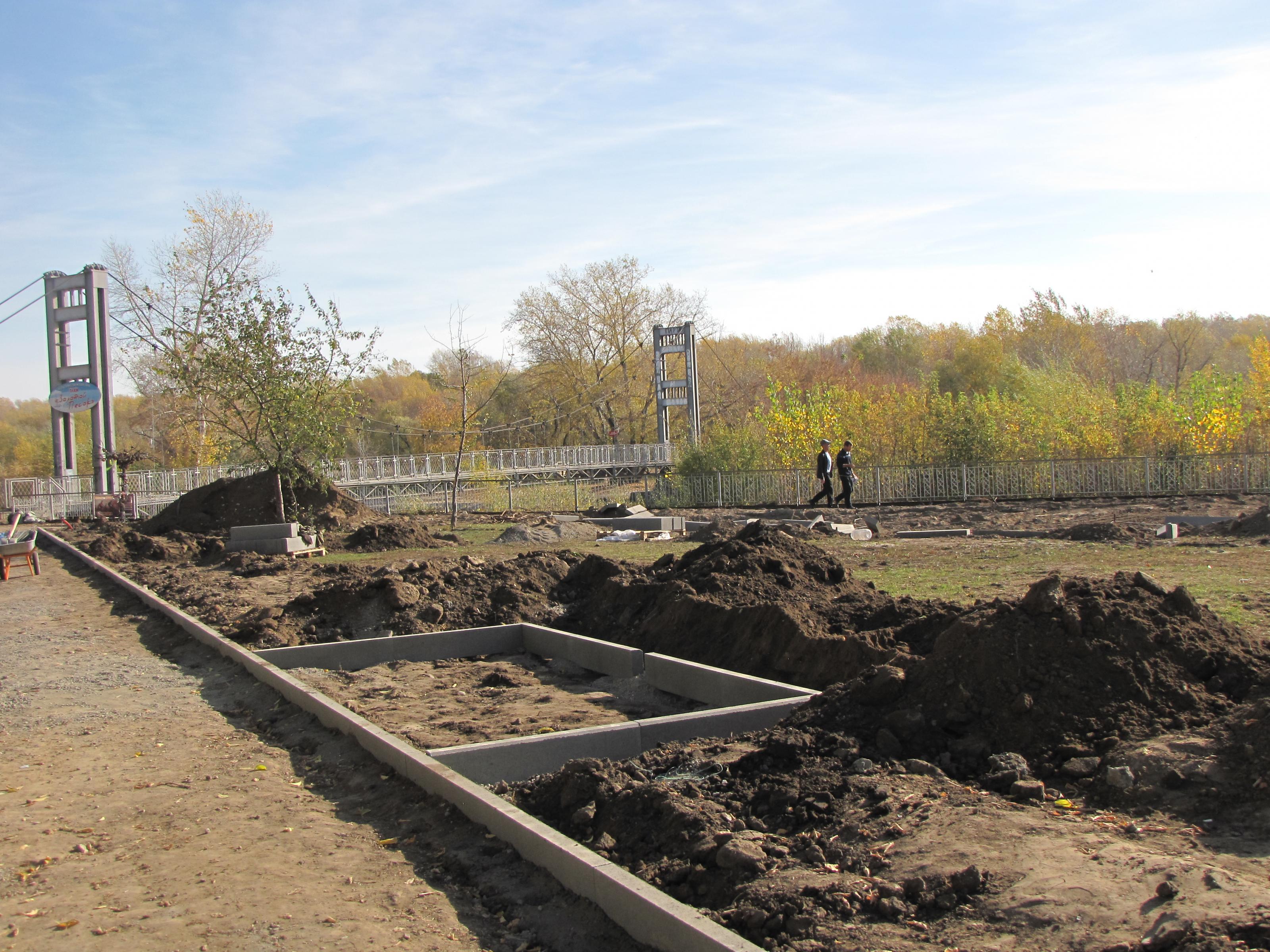 Участники совещания ознакомились с ходом выполненных работ, выслушали предложения и замечания подрядчика, независимых экспертов. На сегодняшний день здесь выполнены работы по демонтажу старого асфальтового покрытия, пешеходных дорожек, выкорчевыванию деревьев, выполняются работы по установке бордюрного камня, разбивке и укладке пешеходных дорожек, производится прокладка электрических кабелей. Заключен договор с субподрядной организацией ООО «Озеленение» на выполнение работ по озеленению. Все работы по благоустройству набережной выполняются согласно графика.