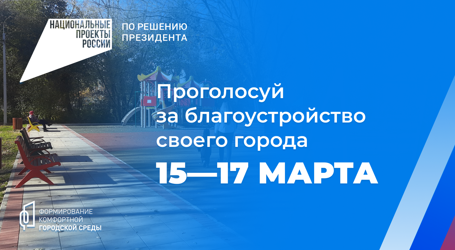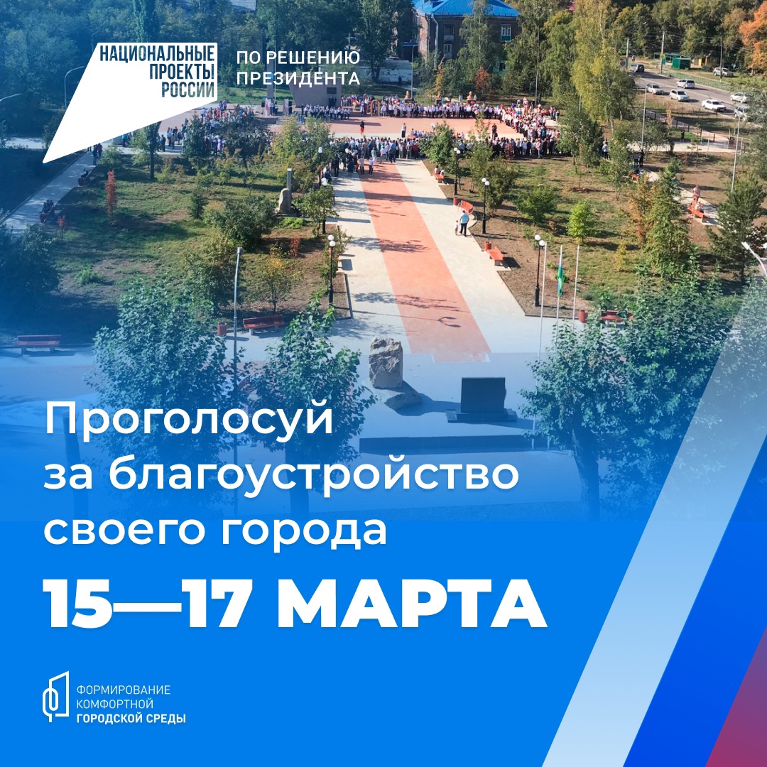 15–17 марта жители нашего города cмогут принять участие в голосовании за объекты благоустройства по федеральному проекту «Формирование комфортной городской среды»! Адреса пунктов голосования смотрите на сайте https://vk.cc/cvaAs2 Приходите на пункты голосования и выбирайте набережную, парк, сквер, площадь или другое общественное пространство, которое нужно создать или обновить!